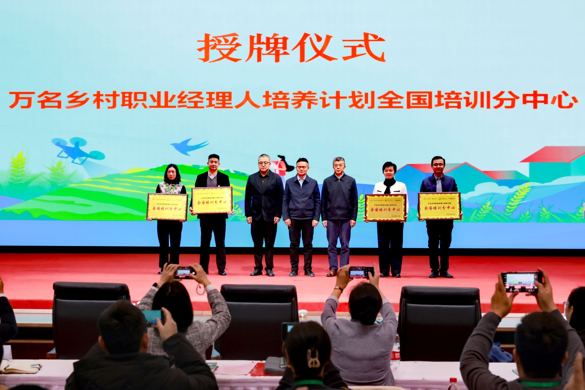 1月7日上午,由中央农业广播电视学校、中国农业大学、腾讯公司共同举办的万名乡村职业经理人培养计划全国分中心授牌仪式暨试点培训班举行开学典礼,万名乡村职业经理人试点培训正式启动。