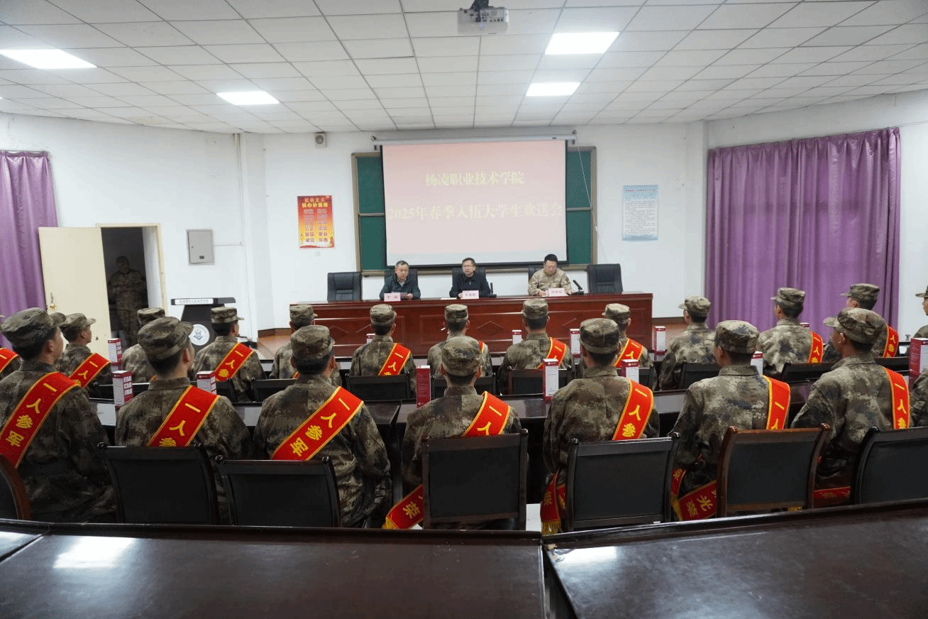 3月14日上午,beat365官网2025年春季应征入伍大学生欢送会在陕西国防工业技师学院举行。副校长张朝晖、杨陵区人民武装部部长胡博伟出席会议。征兵与国防教育科老师和即将入伍的36名大学生等参加欢送会。