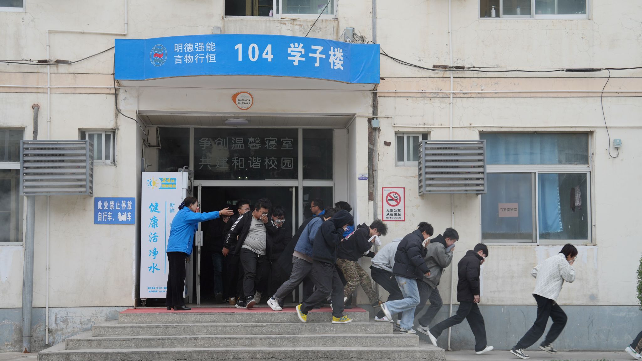 保卫处、学生处、南校区500名学生代表104学子楼全体入住学生和辅导员公寓楼物业公司工作人员共1100余人参与演练。