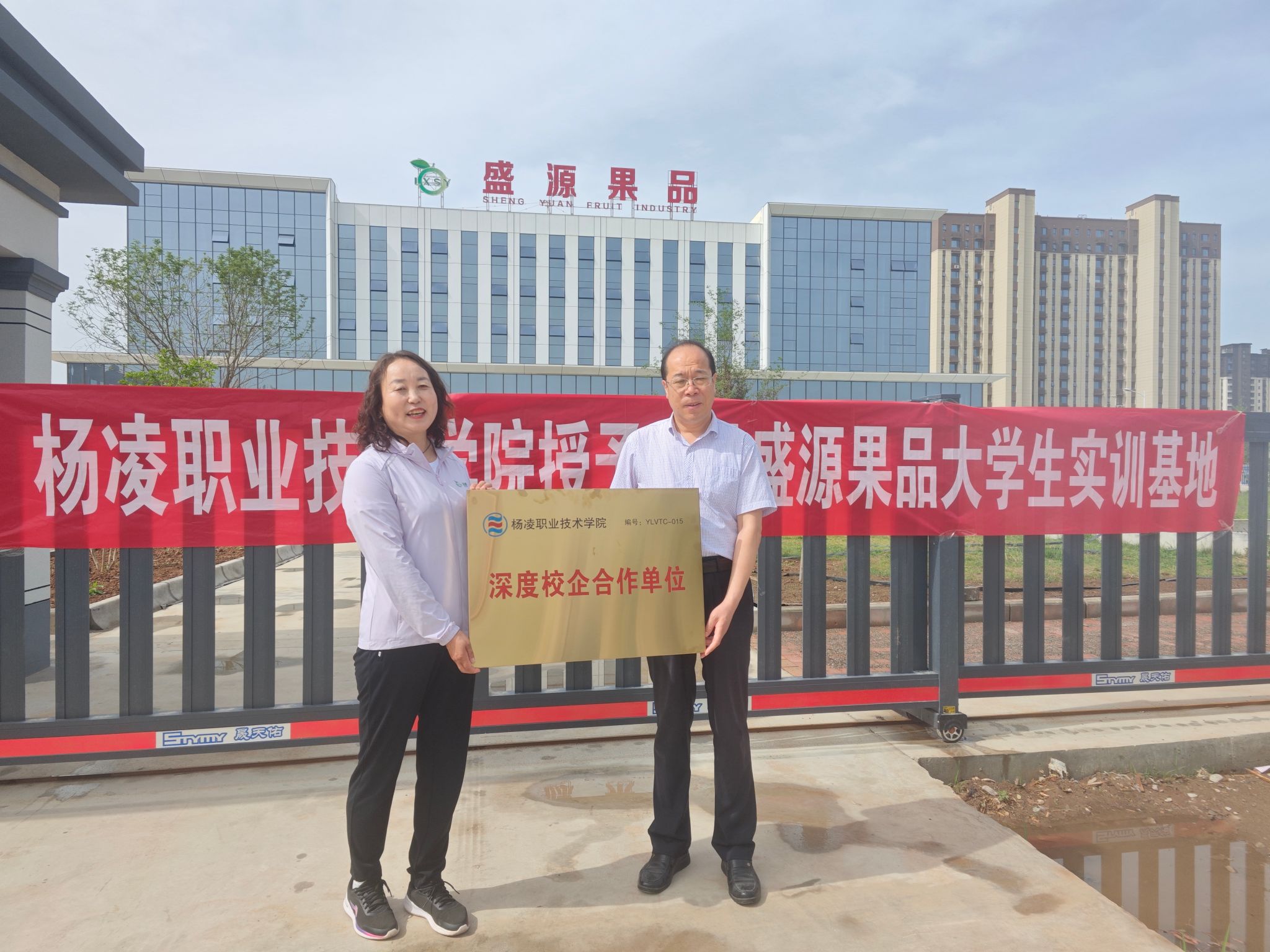 仲伟周为深度校企合作单位陇县盛源果品公司授牌