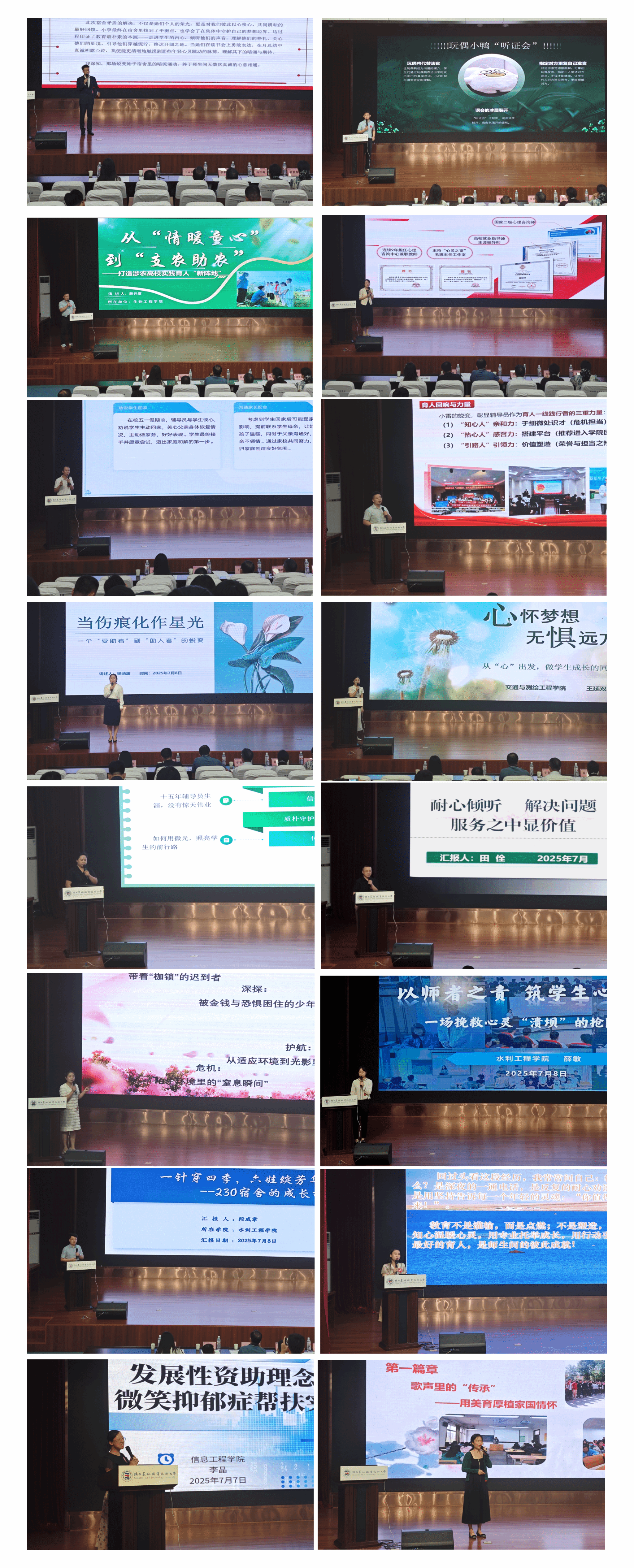 现场交流展示中,16名辅导员围绕辅导员育人工作实际,从思想引领、学业帮扶、心理疏导、家校协作等方面选取典型案例,分享了在日常工作中如何用心用情、细致入微地关爱学生,帮助学生解决实际困难,引导学生树立正确价值观的感人故事。