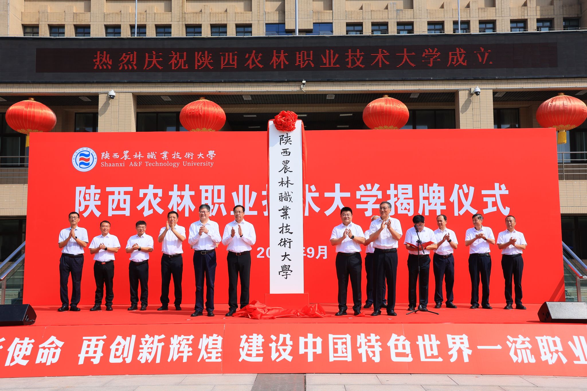 西北农林科技大学党委书记黄思光,杨凌示范区党工委书记史高领,省委教育工委委员、省教育厅副厅长吴振磊,杨凌示范区党工委委员、杨陵区委书记李函,杨陵区委副书记、区长李朝喜;学校党委书记韩明军,校长仲伟周,原党委书记王周锁,党委副书记、纪委书记王勇胜,副校长祝战斌、蒋平江、胡俊鹏等出席揭牌仪式。省教育厅、杨凌示范区、西北农林科技大学、杨陵区有关领导,学校校友及师生代表230余人,共同见证学校跨越发展的历史性时刻。揭牌仪式由学校党委副书记刘瑞明主持。