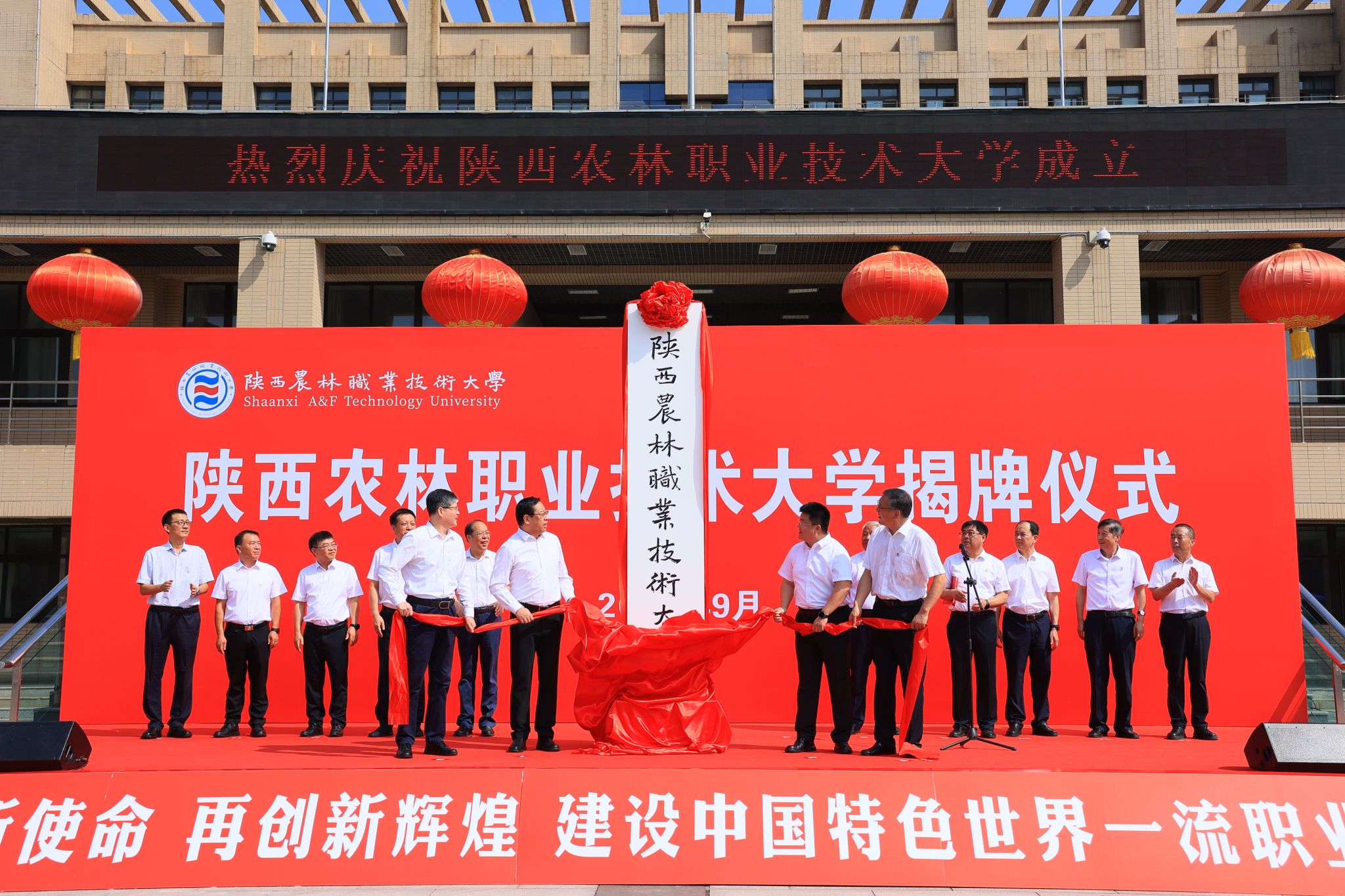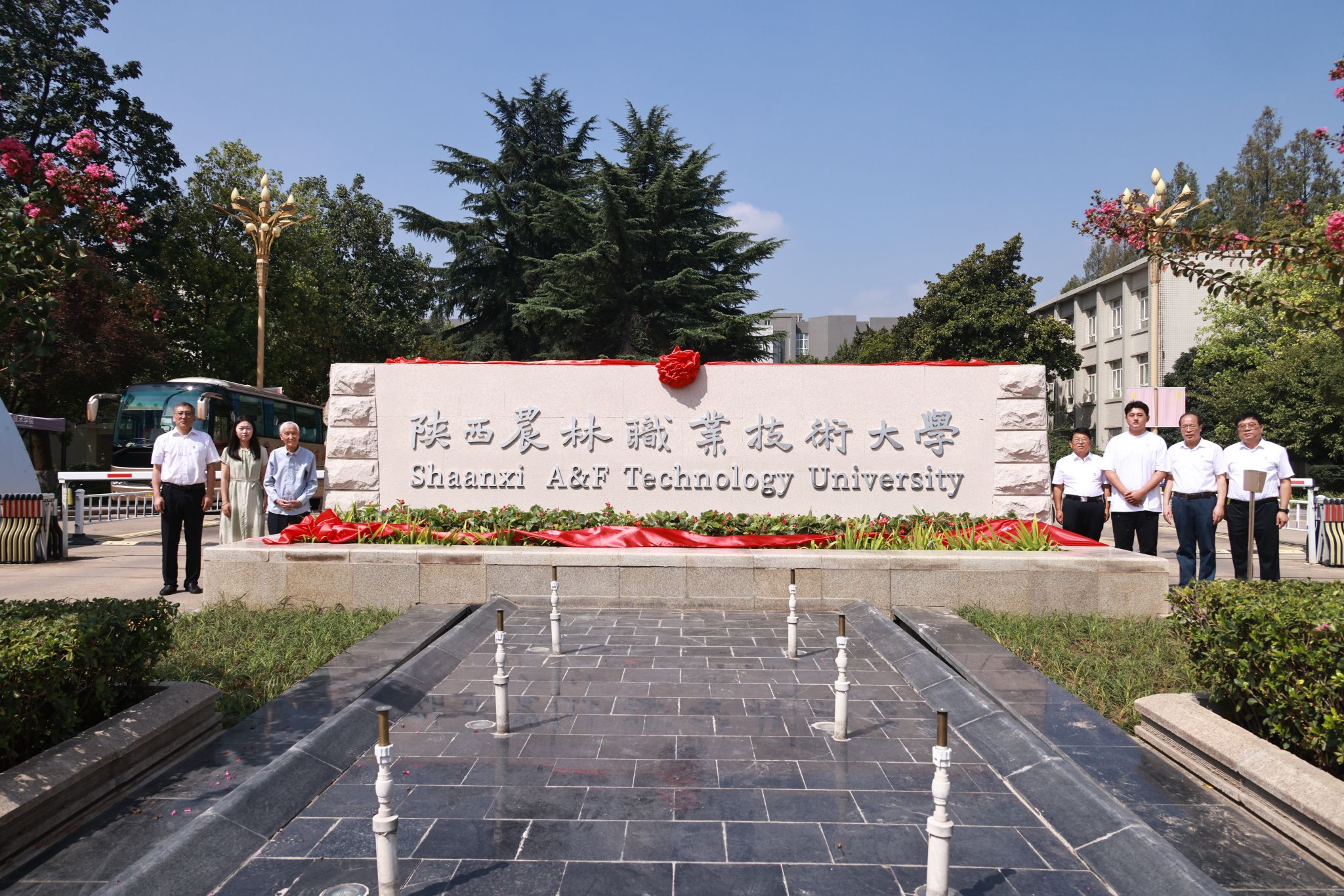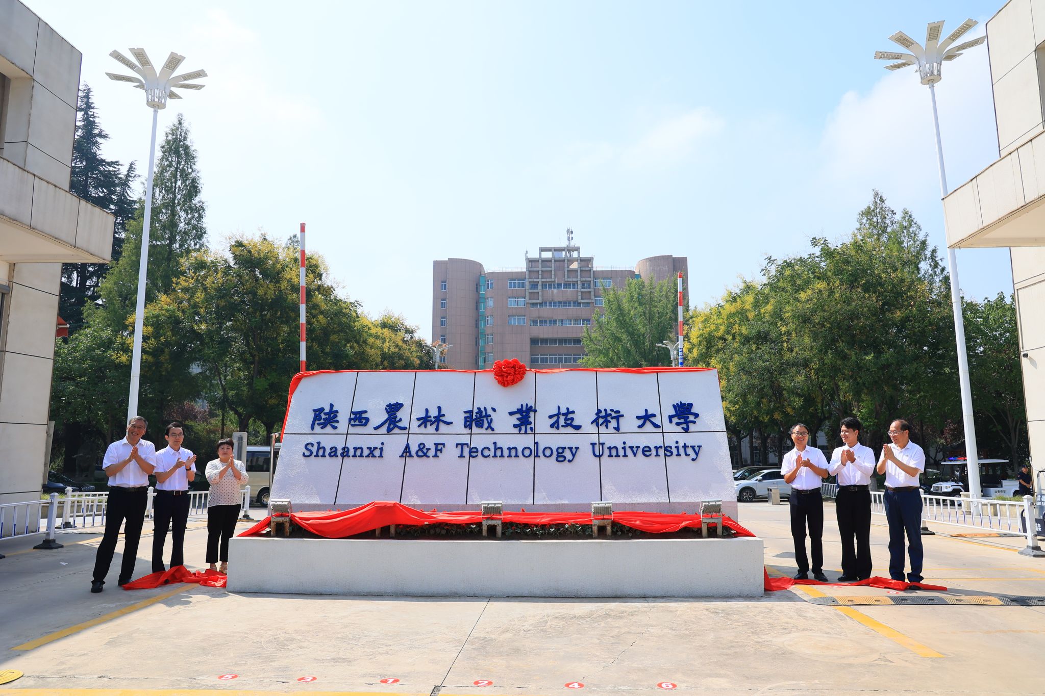 西北农林科技大学党委书记黄思光,杨凌示范区党工委书记史高领,省委教育工委委员、省教育厅副厅长吴振磊,党委书记韩明军共同为学校揭牌