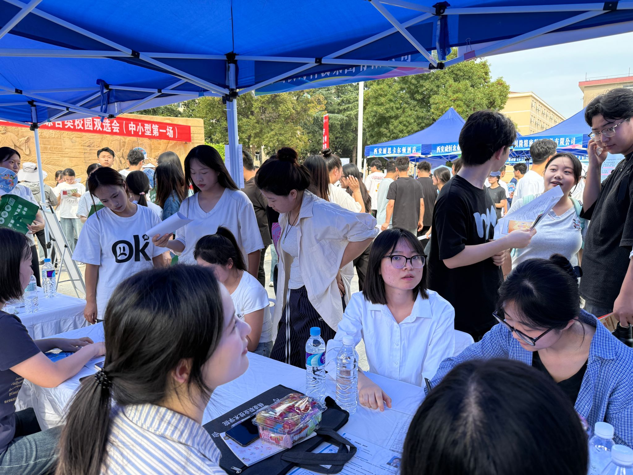 9月15日,学校在南校区1934广场举办2026届毕业生秋季首场校园双选会。副校长蒋平江到场指导,并同用人单位和毕业生现场互动交流,详细了解单位招聘和毕业生就业情况。
