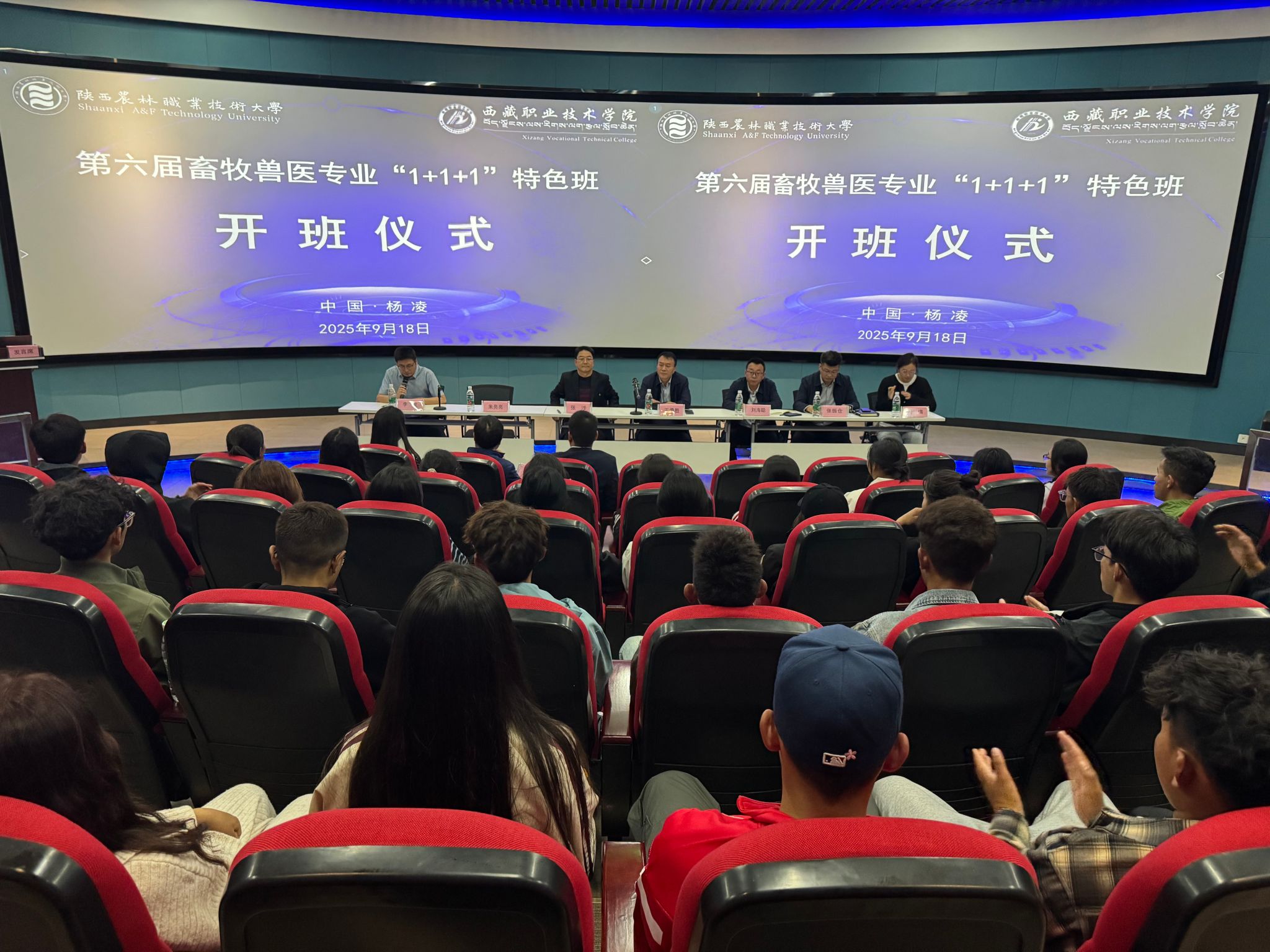 9月18日下午,学校举行第六届畜牧兽医专业“1+1+1”特色班开班仪式。当天,校长仲伟周专程慰问特色班同学,勉励大家要珍惜宝贵的青春年华,树立远大理想,夯实专业基础,锤炼过硬本领,勇于探索创新,不负时代,不负韶华。西藏职业技术学院动物科学技术学院院长刘海聪,beat365官网党委副书记、纪委书记王勇胜出席开班仪式并讲话。西藏职业技术学院动物科学技术学院班主任刘倩,beat365官网动物工程学院负责人、教师代表及畜牧兽医专业“1+1+1”特色班40名学生参加开班仪式。