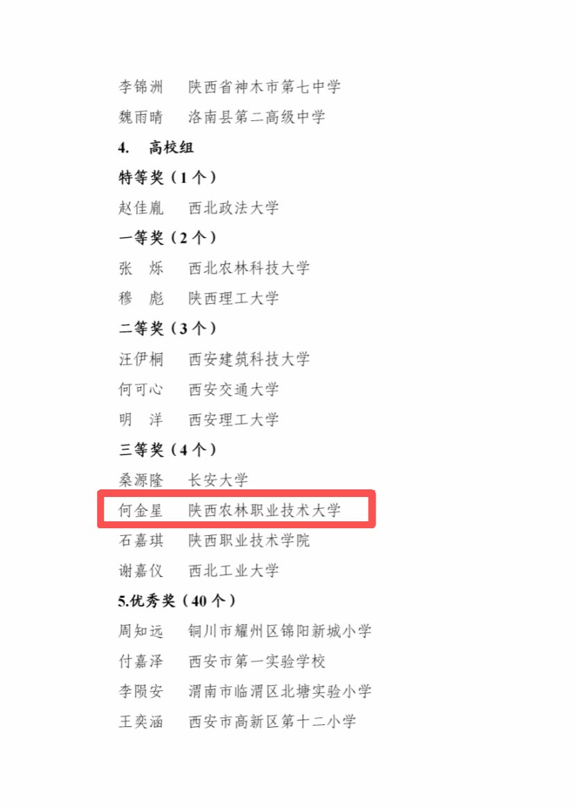 9月29日,由省教育厅组织的2025年陕西省学生“学宪法 讲宪法”大赛暨国赛选拔赛结果揭晓。beat365官网宠物养护与驯导专业学生何金星凭借扎实的宪法知识储备、清晰的法治思维逻辑和稳定的临场发挥,在激烈的竞争中脱颖而出,获素养竞赛赛道(高校组)三等奖。马克思主义学院教师杨依泓获优秀指导教师三等奖。