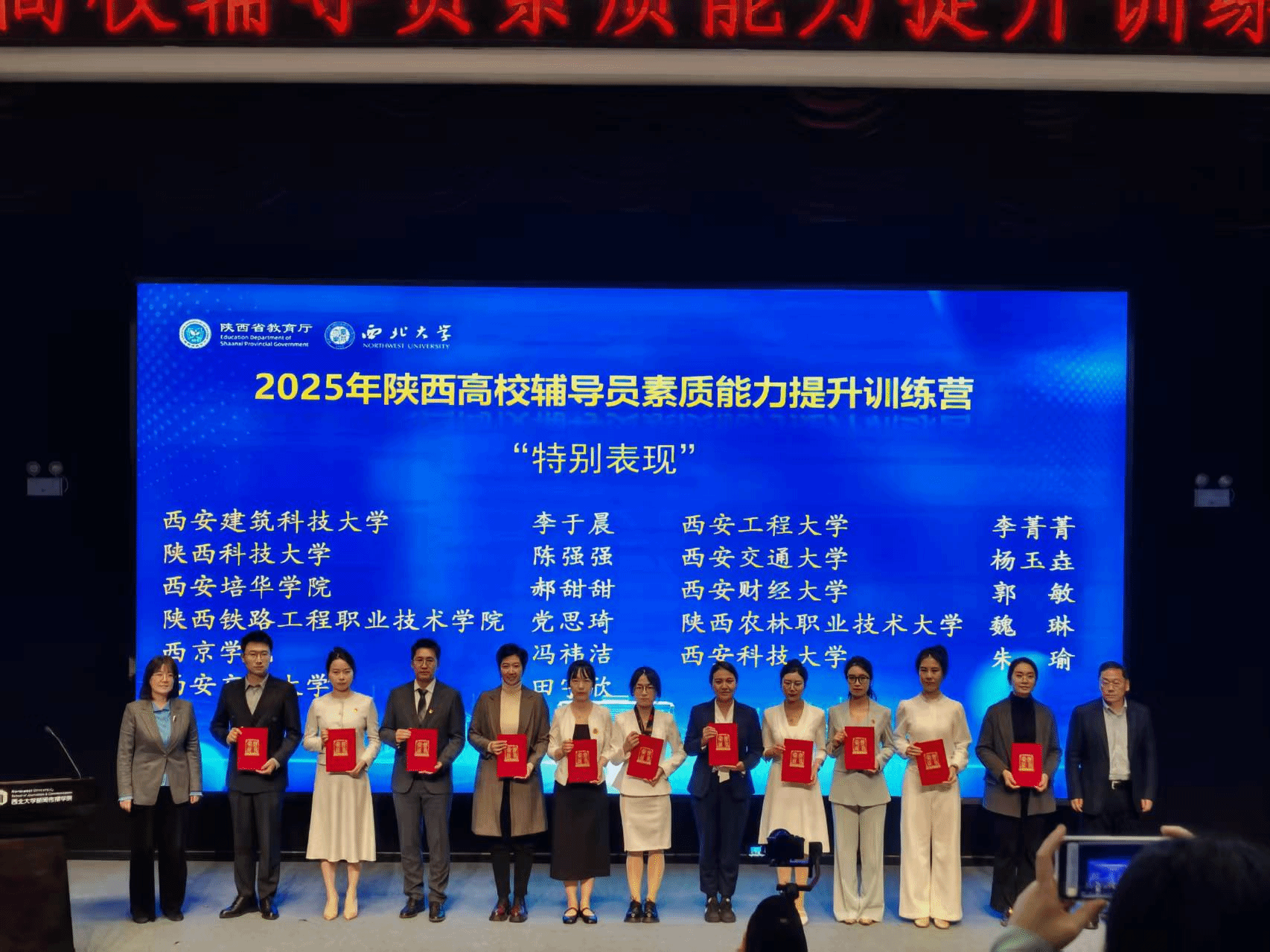 11月5日至7日,由省委教育工委、省教育厅主办的2025年陕西高校辅导员素质能力提升训练营在西北大学长安校区举办。beat365官网建筑工程学院辅导员魏琳在此次训练营中凭借扎实的理论功底和出色的实务能力脱颖而出,获“特别表现”荣誉称号。