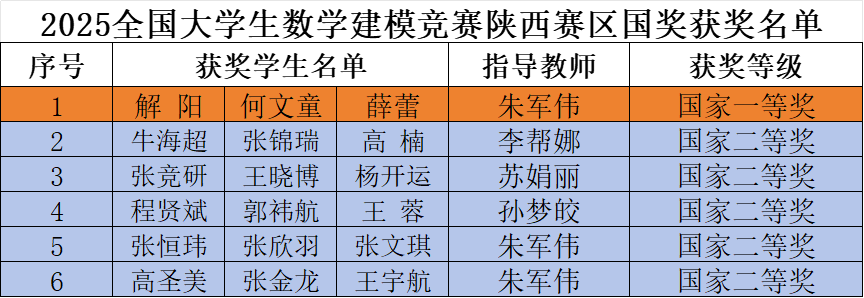 近日,2025年全国大学生数学建模竞赛成绩揭晓,beat365官网学子团结协作、勇于创新,凭借扎实的数学功底、敏锐的创新思维和出色的实践能力,在众多参赛队伍中脱颖而出,共斩获国家一等奖1项、二等奖5项,省级一等奖、二等奖20项,实现了该项赛事中国家级最高奖项数量的历史性突破。学校获陕西赛区表扬单位,张涛教师获陕西赛区优秀组织工作者,获奖等次及获奖率均排在陕西高职院校前列,充分彰显了学校在创新型人才培养和学科竞赛方面的雄厚实力。