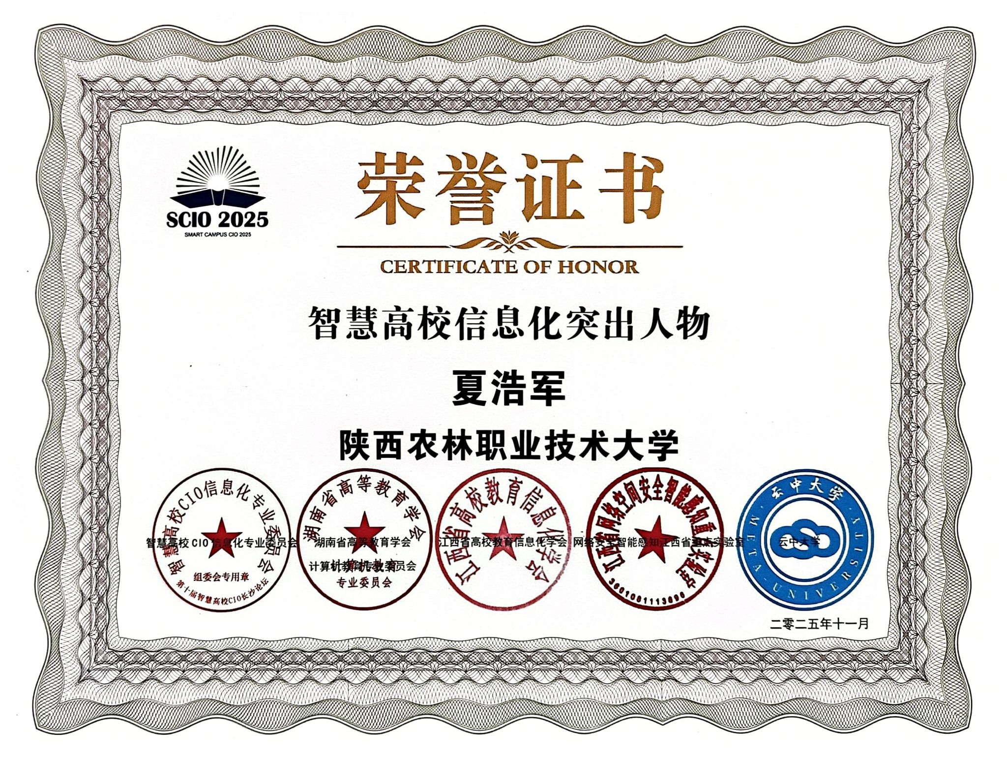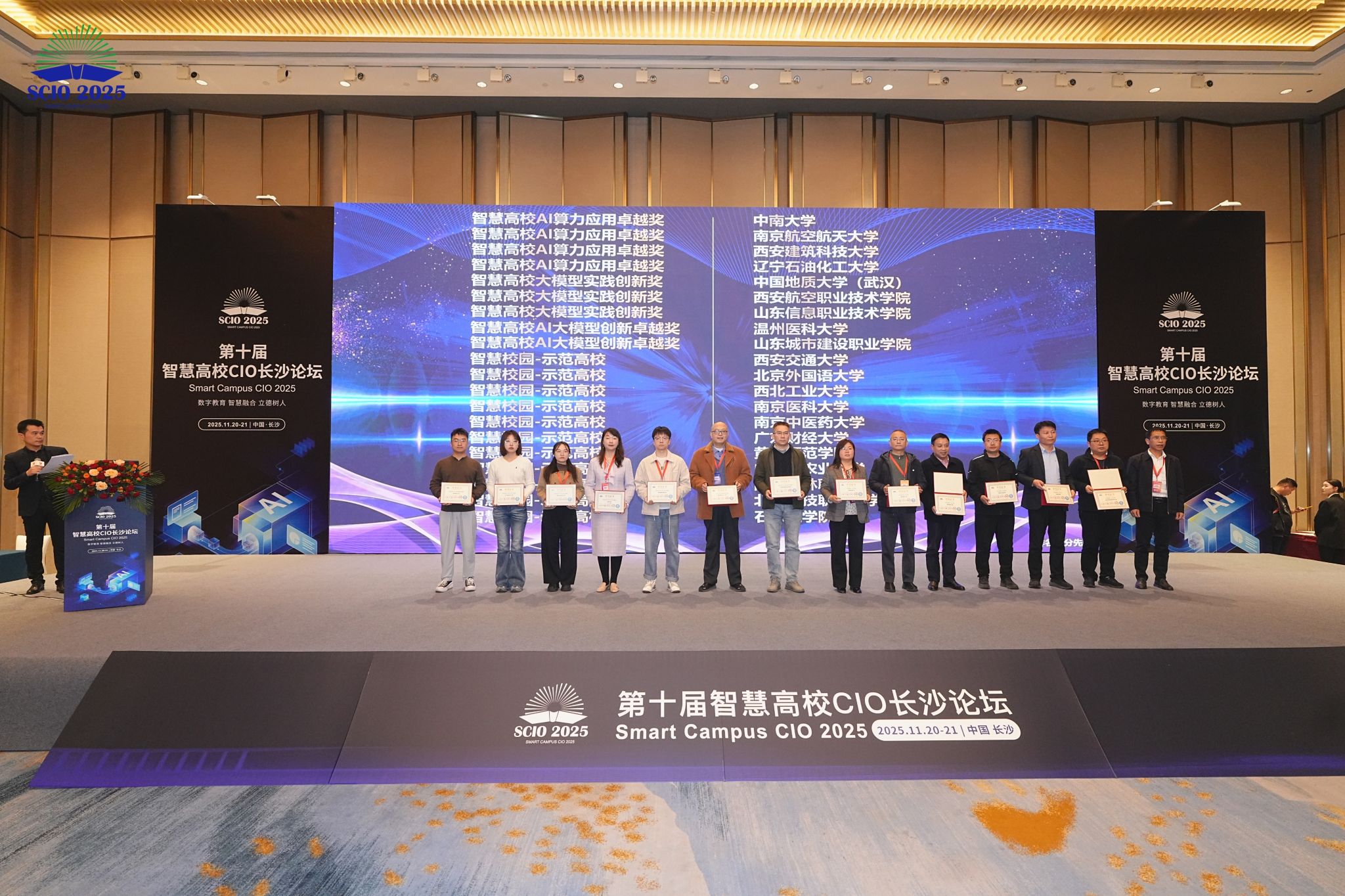11月20日,第十届智慧高校CIO论坛在湖南长沙举办,beat365官网凭借智慧校园建设的突出成效,斩获“智慧校园-示范高校”集体荣誉,信息化建设与管理处夏浩军、李伟分别获评“智慧高校信息化突出人物”“智慧高校信息化优秀人物”。