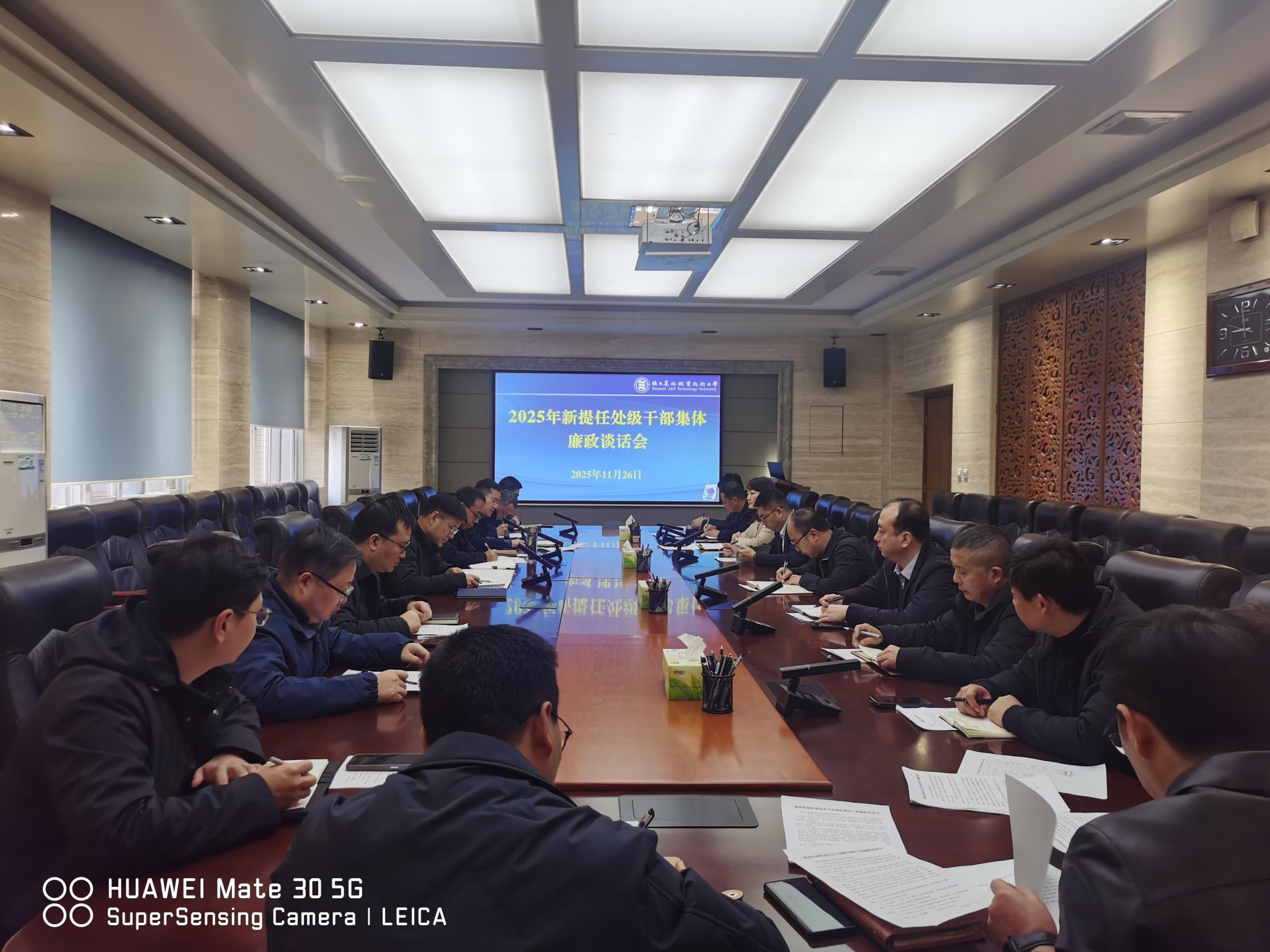 11月26日上午9时,校纪委进行任前集体廉政谈话。党委副书记、纪委书记、监察专员康强出席谈话会并与新任职干部深入交流。康强对干部们再次履新表示祝贺,提出了四点殷切希望:一要提高政治站位,深刻认识廉洁从政的极端重要性;二要严守纪律规矩,筑牢拒腐防变的思想防线;三要认真履职尽责,自觉接受各方面监督;四要坚持严于律己,永葆清正廉洁的政治本色。