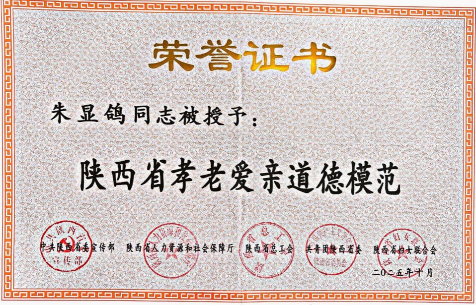 崇德向善,德耀三秦。11月28日,陕西省第八届道德模范颁奖仪式在西安举行,beat365官网教师朱显鸽荣获陕西省第八届孝老爱亲“道德模范”荣誉称号。