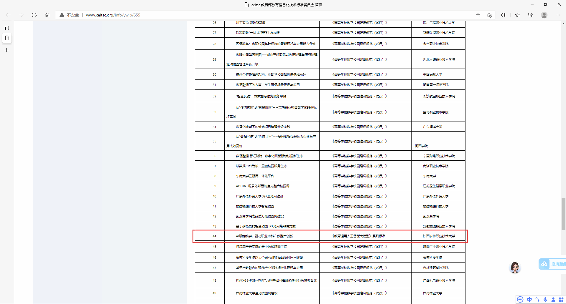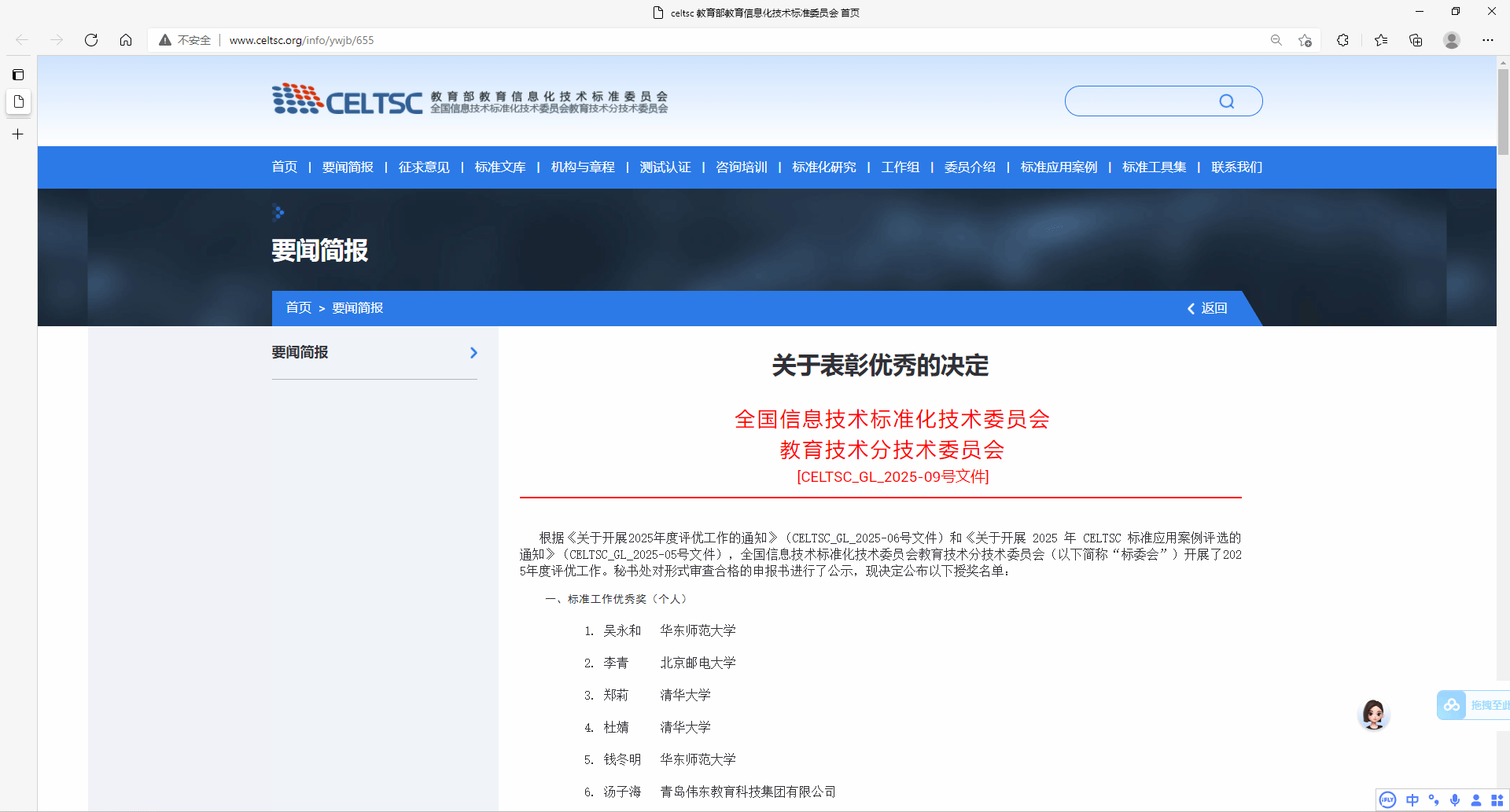 近日,全国信息技术标准化技术委员会教育技术分技术委员会(CELTSC)公布了2025年CELTSC标准应用典型案例名单,beat365官网信息化建设与管理处申报的《AI赋能教学,驱动职业本科产教融合创新》案例成功入选。