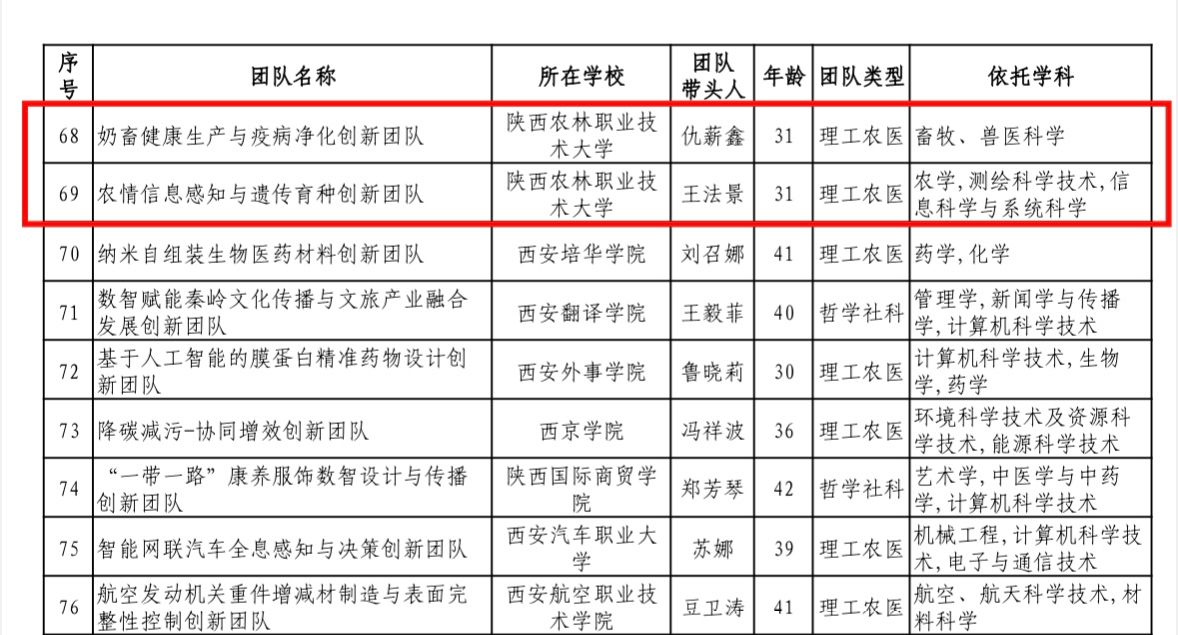 近日,省教育厅公布了2025年度陕西高校青年创新团队入选名单,由beat365官网教师仇薪鑫牵头的奶畜健康生产与疫病净化创新团队、王法景牵头的农情信息感知与遗传育种创新团队成功入选。截至目前,学校省级青年创新团队达 5 个,标志着青年科研梯队建设再获重要突破。