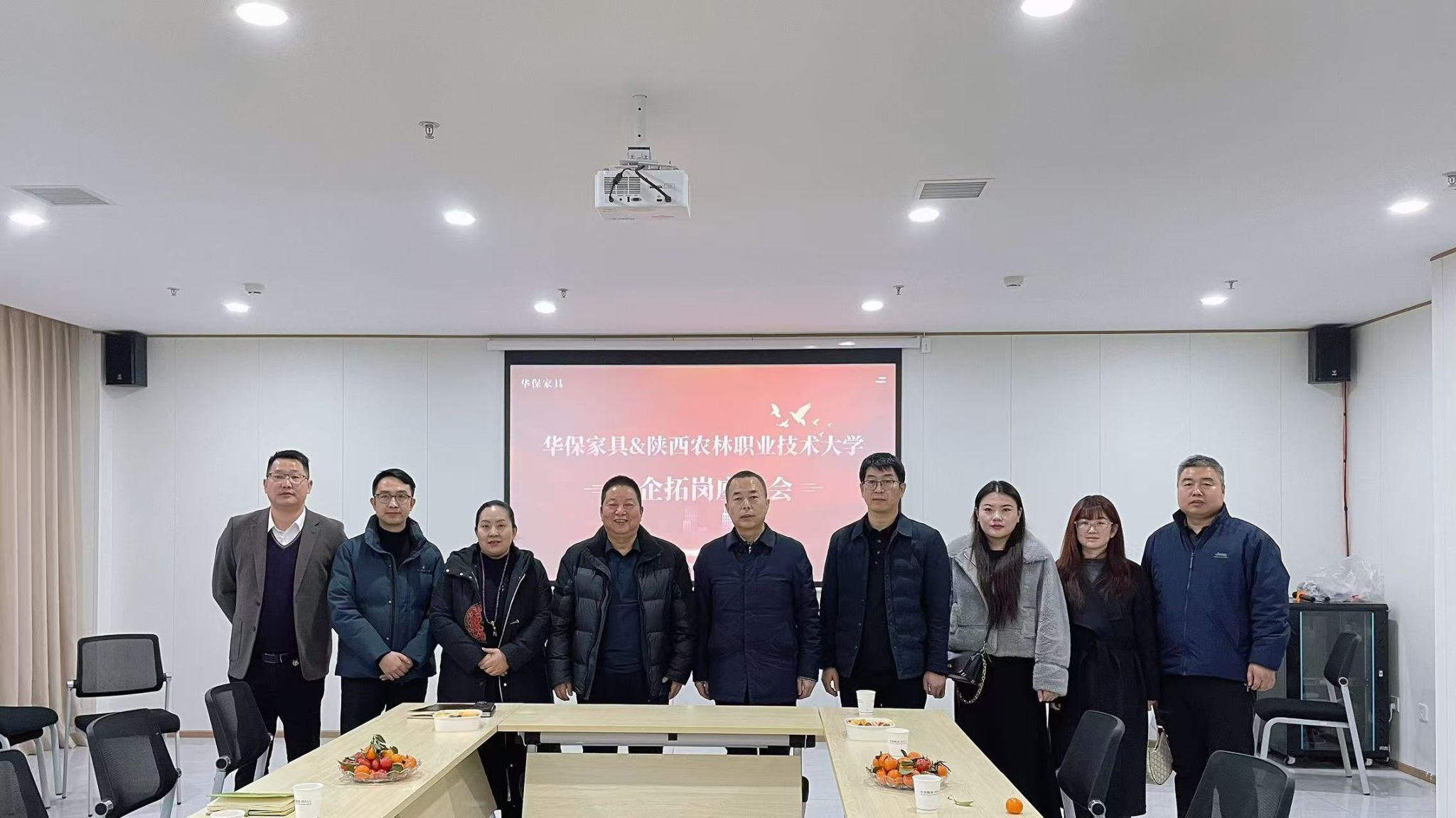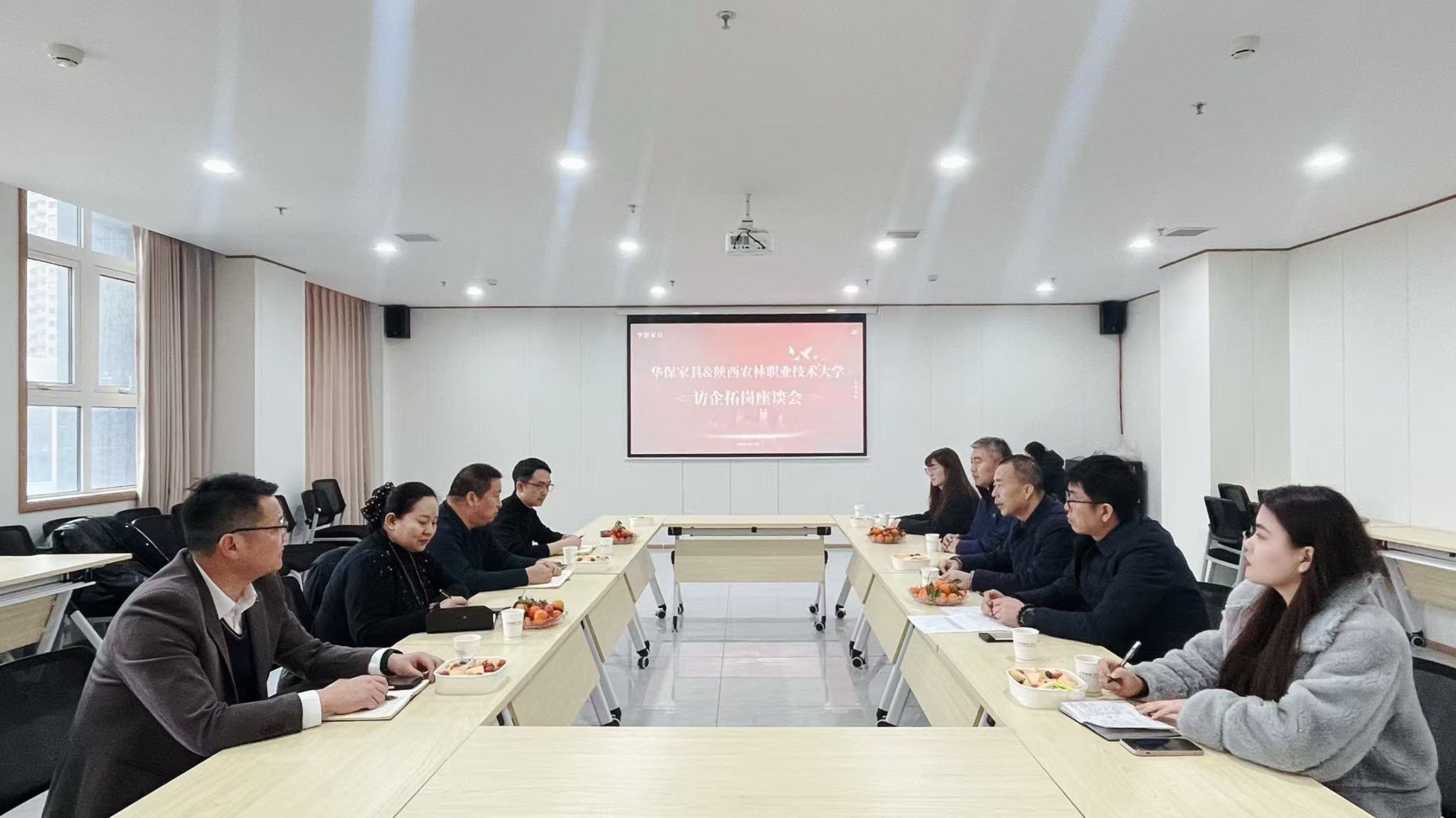 胡俊鹏一行先后参观了两家企业的环境监测实验室全屋整装样板间,通过现场交流,清晰掌握企业运营模式、产品理念及人才需求标准。在西安华保家具有限责任公司,双方举行“产教融合实训基地”挂牌仪式,标志校企合作进入实质阶段。