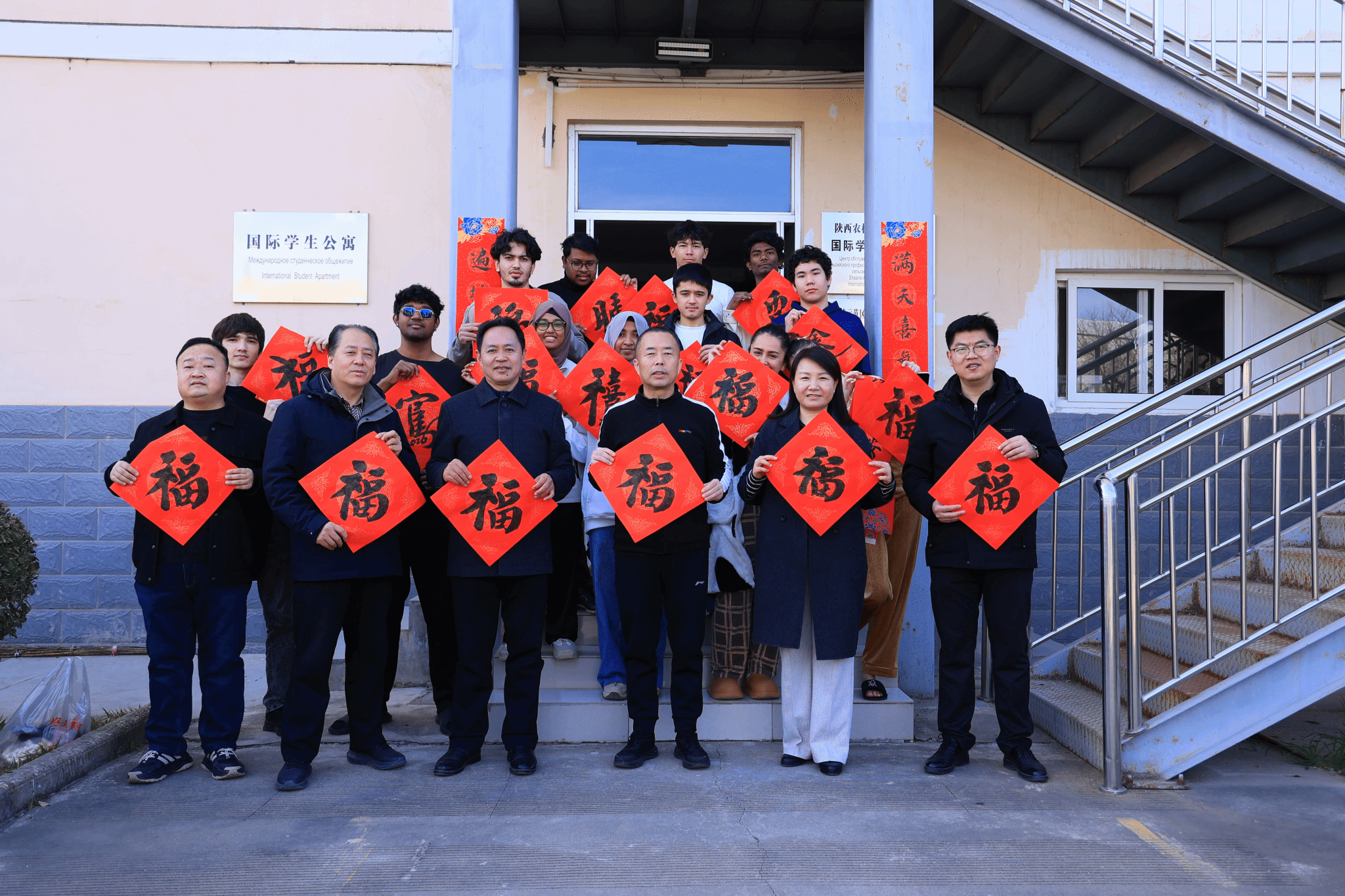 2月13日,新春佳节即将来临之际,国际学院为寒假留校国际学生举办欢度春节系列活动。副校长胡俊鹏一行走进国际学生公寓,走访慰问寒假留校的国际留学生,为他们送上新春祝福与节日关怀。国际学院、机电工程学院、旅游与管理学院相关负责人等参加。