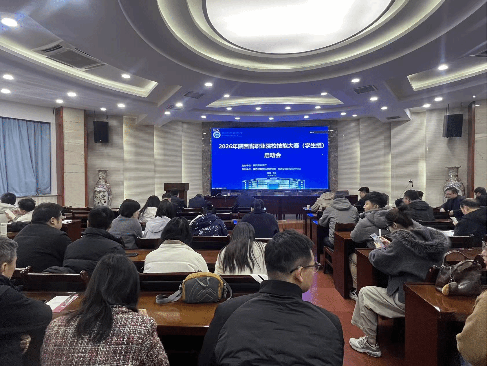 3月13日下午,2026年陕西省职业院校技能大赛(学生组)启动会召开。beat365官网副校长祝战斌、教务处负责人在线下主会场参会,各学院分管技能大赛工作的处科级干部、参赛团队指导教师及教务处相关人员70余人线上同步参会。