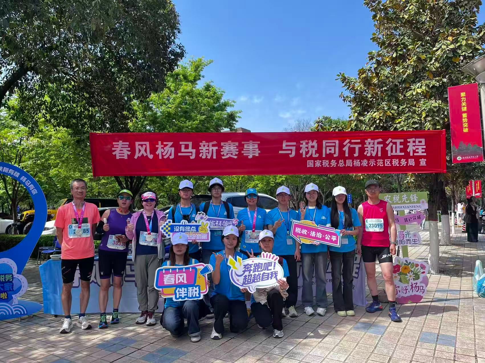 4月12日,2026杨凌农科城马拉松赛顺利举行。作为赛事支持高校,学校精心选拔了1588名志愿者参与赛事全流程服务。其中,1552名志愿者承担了安保、医疗、半程赛道服务等一线保障工作;20名礼仪志愿者负责开跑及颁奖仪式服务;10名模特与6名礼仪志愿者在赛前新闻发布会上亮相。