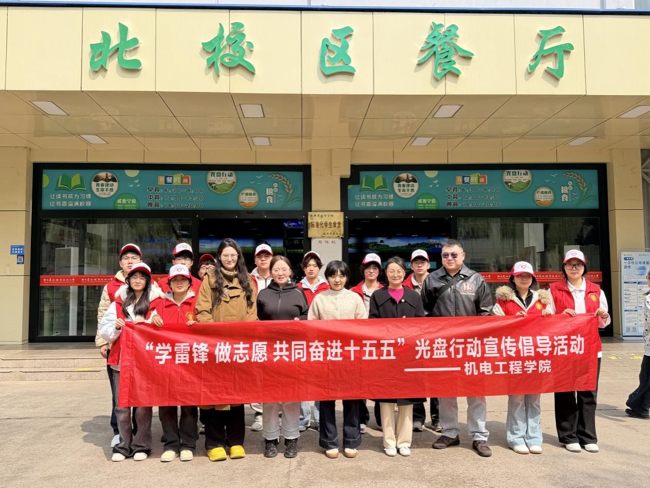 ——深耕校园,让雷锋精神融入日常教育。各学院积极组织志愿者参与校园环境整治、文明劝导、图书整理、爱心帮扶等行动,主动维护校园整洁、关爱身边同学、协助老师工作,用点滴行动营造团结友爱、文明和谐的校园氛围。机电工程学院结合粮食安全开展“光盘行动”宣传活动,在北校区食堂餐具回收区设立“光盘奖励服务点”,化身“文明用餐监督员”与“青春劝导员”温馨提醒,倡导同学们“按需取餐、少量多次”杜绝浪费。信息工程学院扎实开展计算机技能培训、公益证件照拍摄等特色志愿服务,以我为同学做实事诠释雷锋精神的时代内涵。生物工程学院聚焦校园主干道、操场、食堂周边及广场,开展烟头专项清理、卫生死角整治服务工作,用行动守护校园环境、倡导文明新风。
