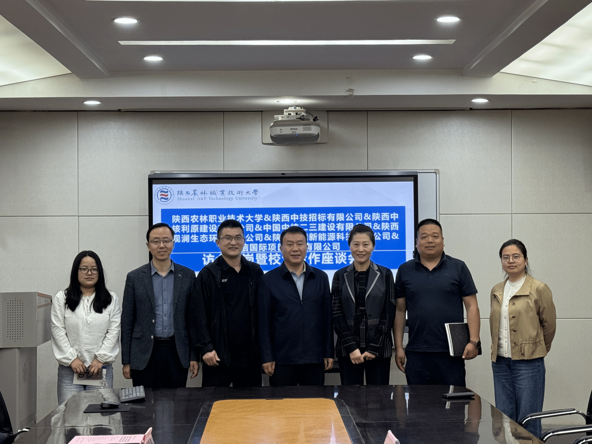在建筑工程学院校企合作座谈会上,陕西中技招标有限公司、陕西中核利原建设有限公司、中国核工业二三建设有限公司、陕西观澜生态环境有限公司、陕西风润新能源科技有限公司、瑞信国际项目管理有限公司六家行业龙头企业代表与学院负责人、专业带头人深入交流,就人才培养、实习实训等议题达成共识。