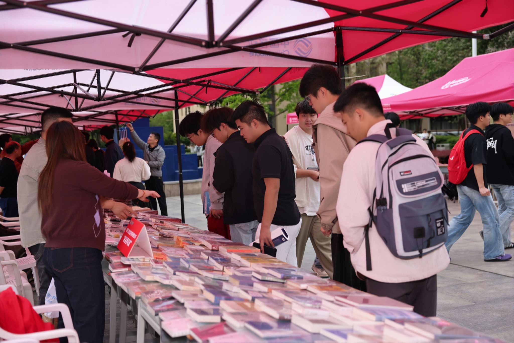 在南校区1934广场举办的纸质图书展涵盖人工智能、算法伦理、哲学文学、专业技能提升、工匠精神等多元图书品类,让 AI 阅读话题回归纸质书本,满足师生阅读与购书需求。
