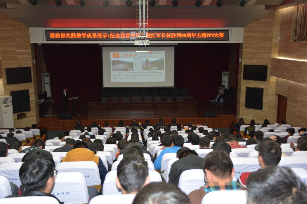 12月22日晚,学院思政课教学部在醒钟楼思辨堂举办了“追忆革命历史,弘扬长征精神——庆祝建党95周年暨红军长征胜利80周年主题PPT大赛”。院团委、建筑工程分院、生物工程分院、药物工程分院、学工办负责人及思政部全体教师、学生代表共计300余人参加。
