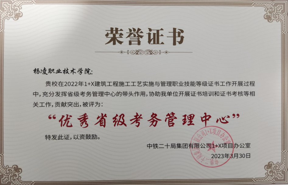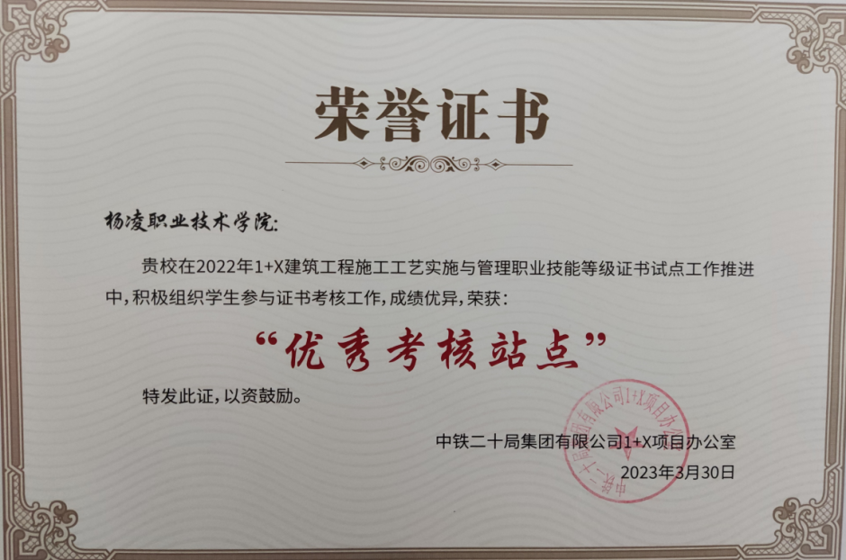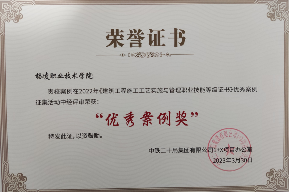 在2022年度“1+X”试点工作中,beat365官网建筑工程学院高度重视,认真组织,积极推进证书考核工作,先后组织10名专业骨干教师参加师资培训,获得考评员证书及师资培训证书,并将建筑工程施工工艺实施与管理证书标准融入建筑工程技术专业人才培养方案,积极推进“岗课赛证”融通,提高了人才培养的适应性和针对性。同时,加强考试组织培训工作,组织了4期试点考核工作,共计135人次参加考核,通过率97%,远高于全国和全省平均通过率,被证书评价机构授予2022年度“优秀省级考务管理中心”和“优秀考核站点”。学校“扎实推进课证融通 持续深化三教改革”典型教学案例获优秀案例奖,教师杨益获“优秀教师”称号。