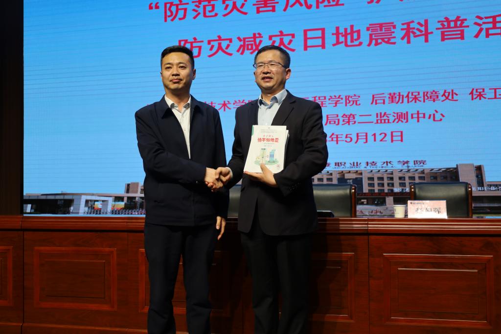 ——科普讲座,助力师生增强意识。5月12日,与中国地震局第二监测中心联合开展防灾减灾日地震科普进校园活动,通过召开座谈会、举办科普讲座、捐赠地震知识方面书籍等活动,进一步提高了师生防灾减灾能力和避灾自救技能,坚定了学生学好自身专业的决心。