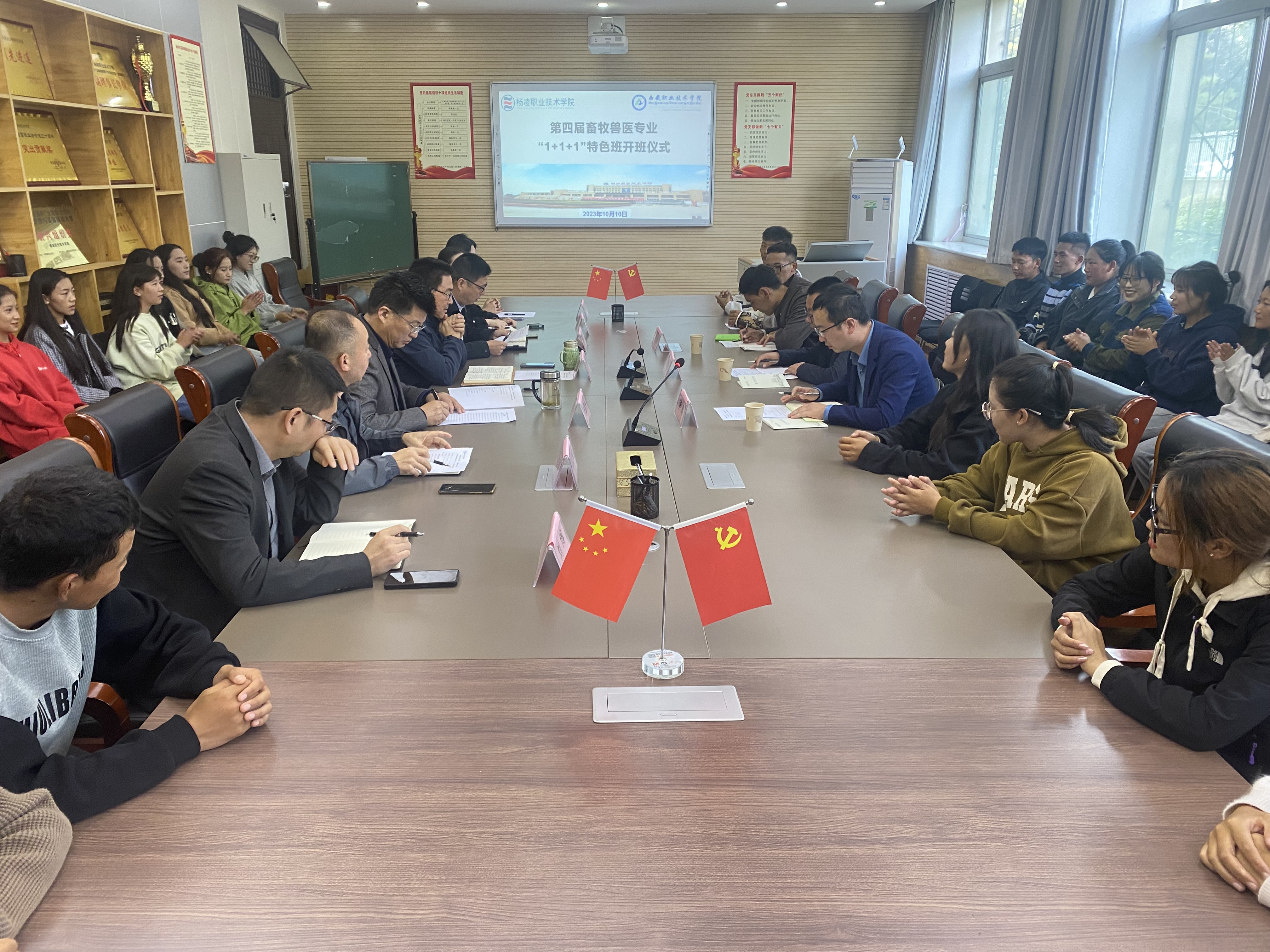 张振仓院长对西藏职院各位领导、老师和特色班的同学们表示热烈欢迎,并指出,在两校及西北农林科技大学三方合作下,往届学生人才培养质量良好。他希望同学们要抓住学习机会,深造提高;要遵守校纪校规,自觉养成良好行为习惯;要努力成为藏汉两民族的融合体。