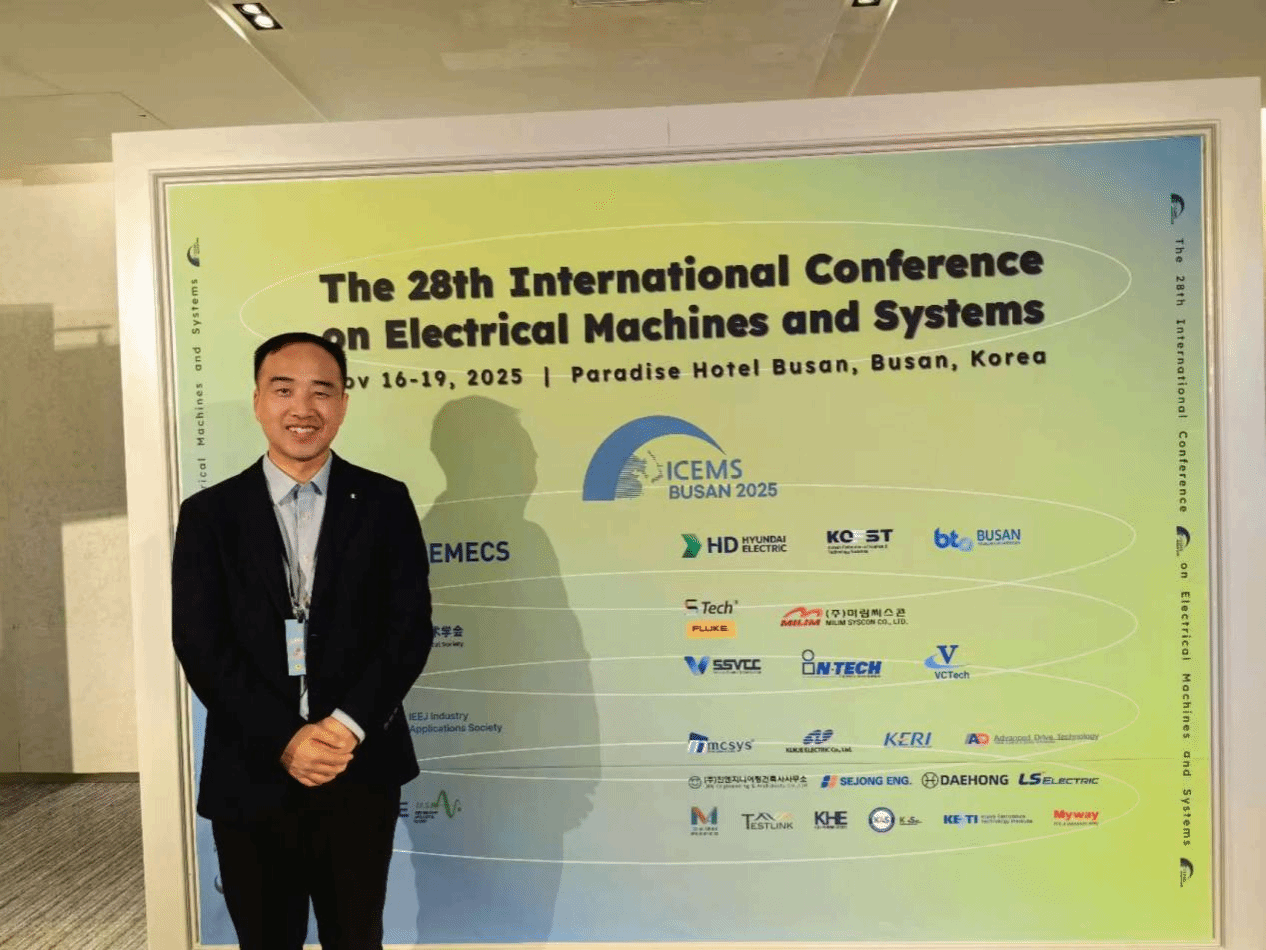 11月16日至19日,beat365官网机电工程学院陈鹏博士赴韩国釜山,参加第28届国际电机与系统(ICEMS2025)国际会议。在分会场,他以《Pulsating High Frequency Voltage Injection for Sensorless Control of SPMSM Using Eddy Current Loss Reflected Resistance Saliency》为题作报告,分享了在永磁同步电机无位置传感器控制领域的最新研究成果。