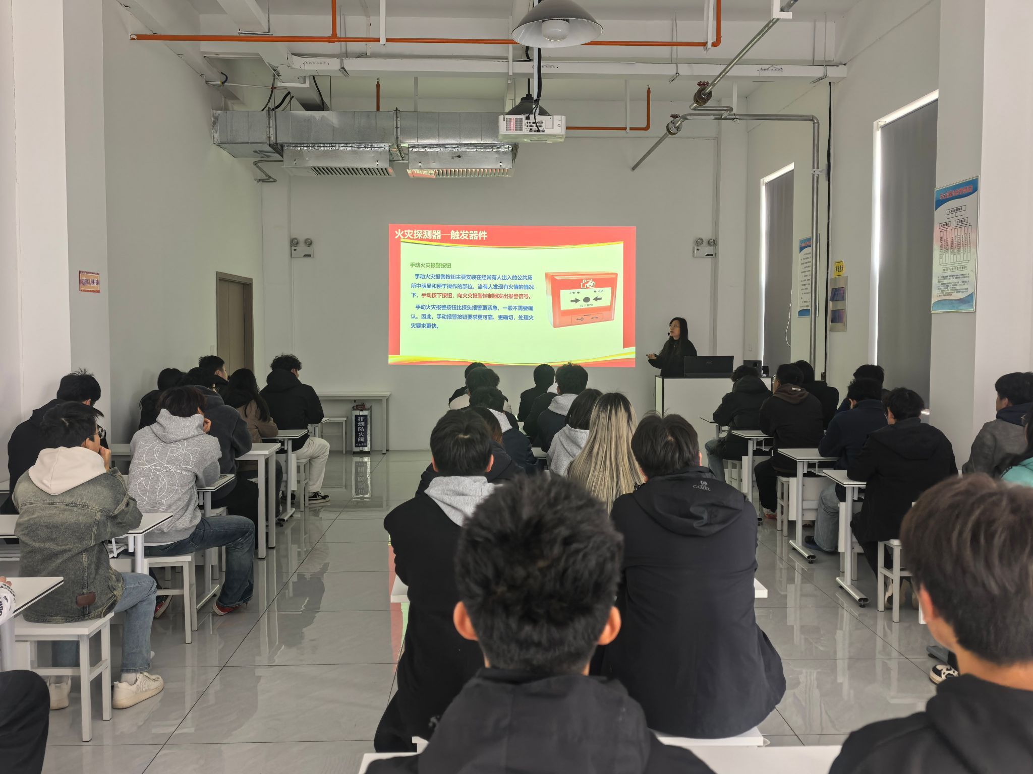 活动中,杨凌易侒消防培训学校的郭老师为同学们开展“消防知识浅谈”专题讲座。她结合高校火灾特点,围绕消防法规、火灾预防、自救互救等核心内容,讲解火灾成因与防控要点,重点强调学生宿舍、实验室等场景的防火注意事项,并结合典型案例,引导同学们树立“安全第一、预防为主”的理念。