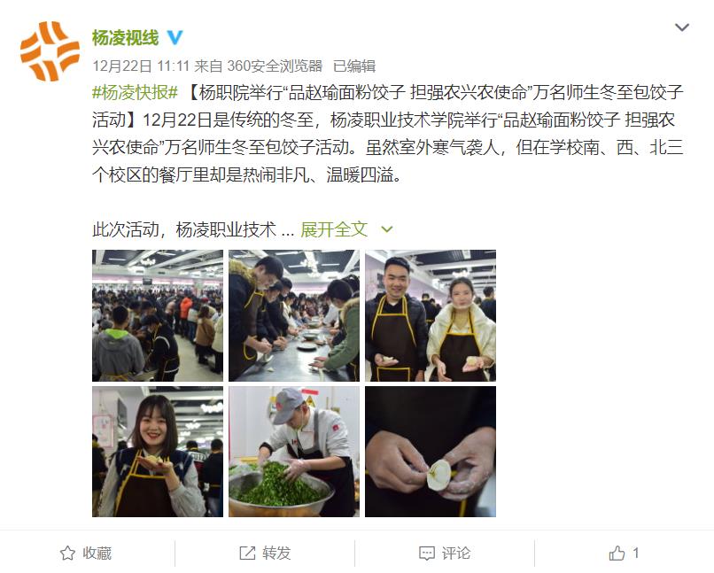 【杨凌视线官方微博】杨职院举行“品赵瑜面粉饺子 担强农兴农使命”万名师生冬至包饺子活动