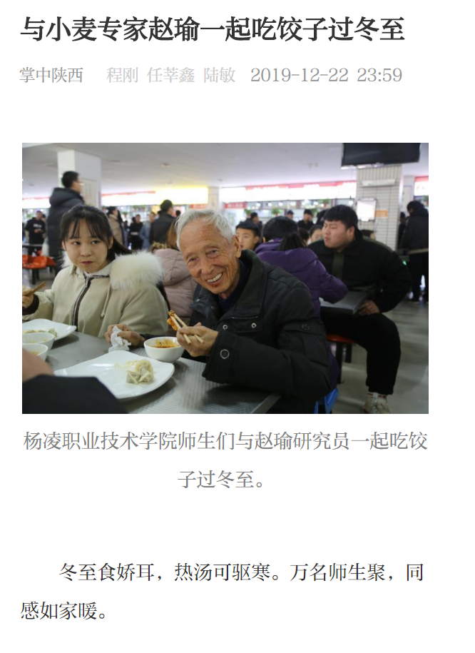 【掌中陕西】与小麦专家赵瑜一起吃饺子过冬至