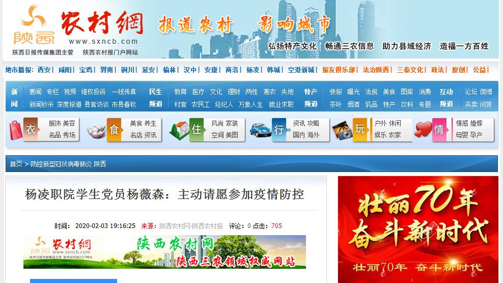【陕西农村网】杨凌职院学生党员杨薇森:主动请愿参加疫情防控