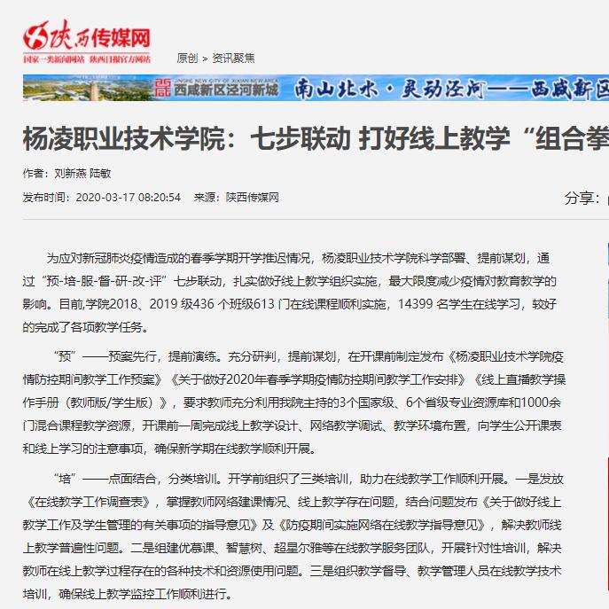 【陕西传媒网】杨凌职业技术学院:七步联动 打好线上教学“组合拳”