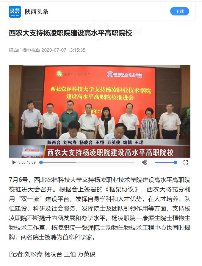 【陕西头条】西农大支持杨凌职院建设高水平高职院校