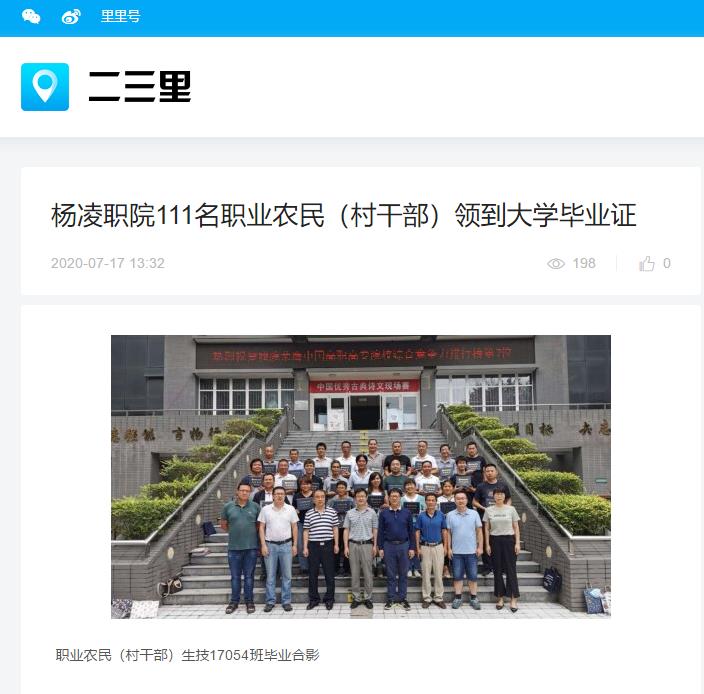 7月16日,杨凌职业技术学院生物工程分院2017级职业农民和村干部顺利毕业。这111名来自富平县、眉县、杨陵区的职业农民和村干部学员2017年入学,通过三年全日制学历教育,顺利完成学业拿到毕业证书,成为我院农民大学学历教育班的第二批毕业生。