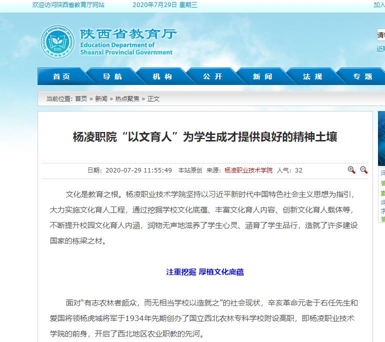 【陕西省教育厅】杨凌职院“以文育人”为学生成才提供良好的精神土壤