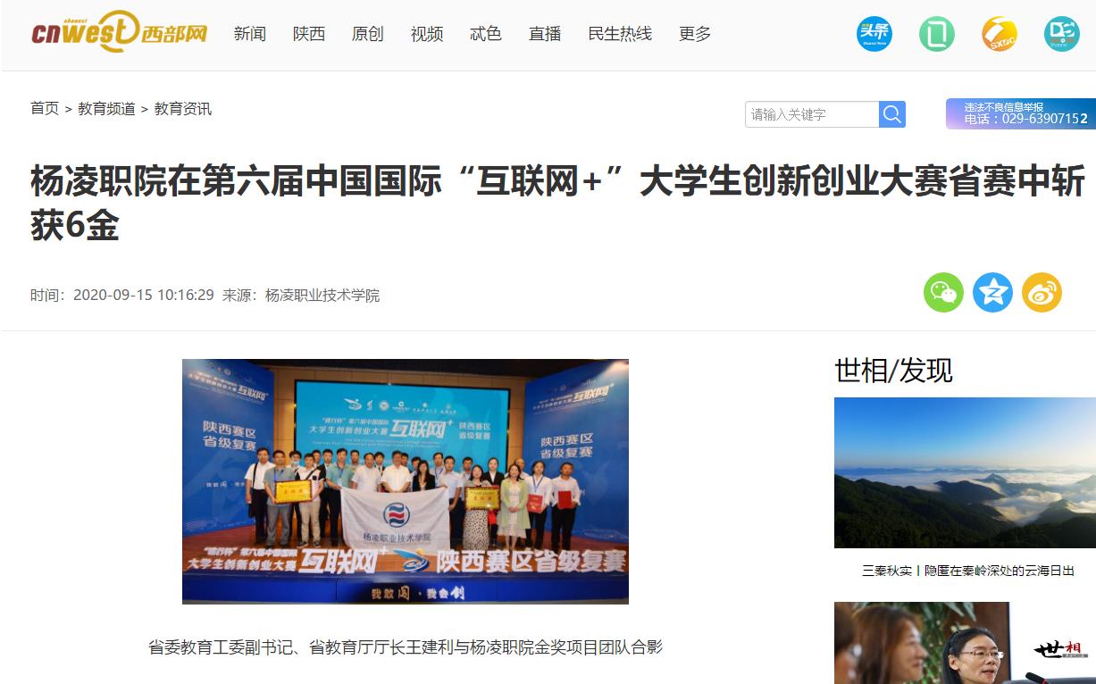 9月11日至13日,第六届中国国际“互联网+”大学生创新创业大赛陕西赛区省级复赛举行。杨凌职业技术学院荣获6个金奖,其中职教赛道4个,青年红色筑梦之旅赛道2个,并分别荣获职教赛道和青年红色筑梦之旅赛道高校集体奖。总成绩位居全省高职院校第一,是青年红色筑梦之旅赛道金奖唯一获得的高职院校。省委教育工委副书记、省教育厅厅长王建利对杨凌职院各项目队的表现和成绩进行了肯定,并与学院参赛师生合影。