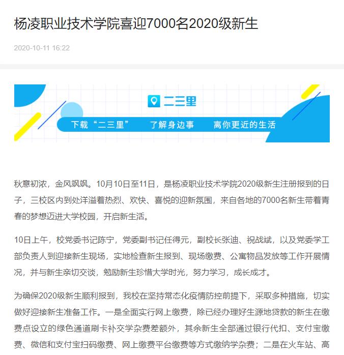 秋意初浓,金风飒飒。10月10日至11日,是杨凌职业技术学院2020级新生注册报到的日子,三校区内到处洋溢着热烈、欢快、喜悦的迎新氛围,来自各地的7000名新生带着青春的梦想迈进大学校园,开启新生活。