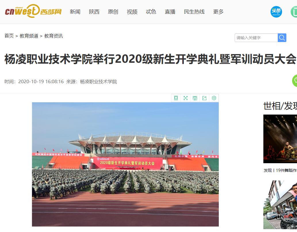 【西部网】杨凌职业技术学院举行2020级新生开学典礼暨军训动员大会