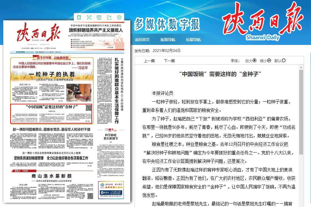 【陕西日报头版评论员文章】“中国饭碗”需要这样的“金种子”