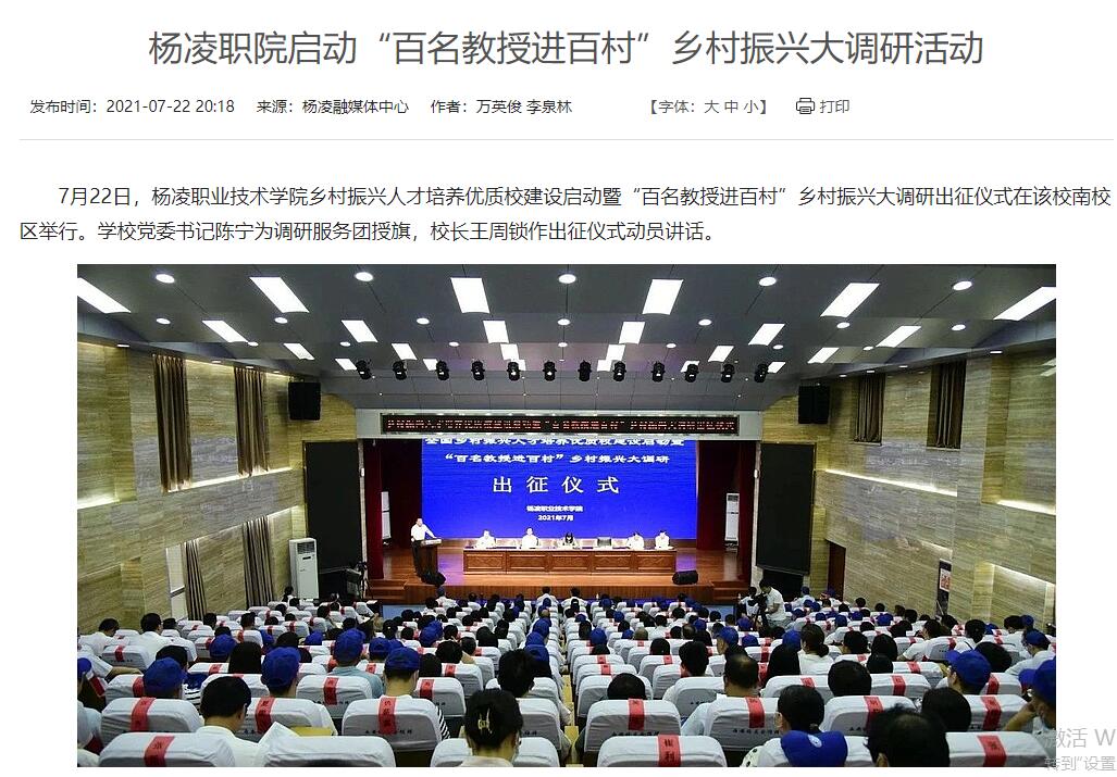 此次活动将有杨凌职院300位思想素质好、理论水平高、实践经验丰富和责任心强的专家教授,组成110个服务团,深入陕西省12个市(区)的100个县村,通过开展党史宣传讲座、专题化“百村论坛”、现代农业技术推广、乡村治理咨询及乡村发展现状研究等活动,搭建服务“乡村振兴”数据库和长期观察点,形成乡村振兴系列资政调研报告,为产业发展、生态文明、美丽乡村提供智力支持,为地方政府村治理机制创新和农村发展搭建平台,以实际行动勇担乡村振兴使命、积极服务国家战略。