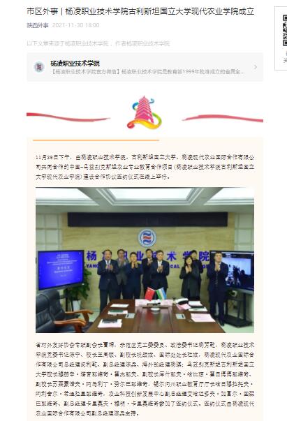 【陕西外事】市区外事 | 杨凌职业技术学院古利斯坦国立大学现代农业学院成立