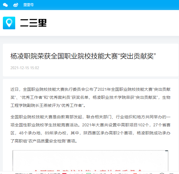 【二三里】杨凌职院荣获全国职业院校技能大赛“突出贡献奖”