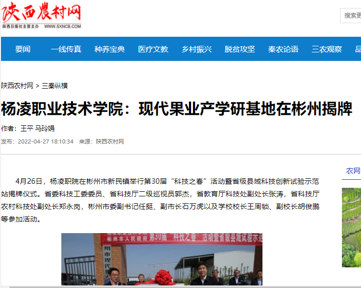 【陕西农村网】杨凌职业技术学院:现代果业产学研基地在彬州揭牌