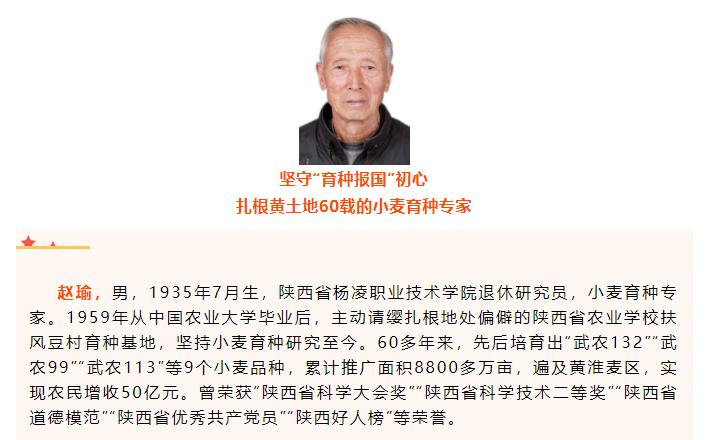 扎根黄土地的60多年里,赵瑜与农民为友,与麦田为伴,用执着与坚守,不断取得新突破。麦穗沉沉,他将“育种报国”的梦想写在了大地上。
