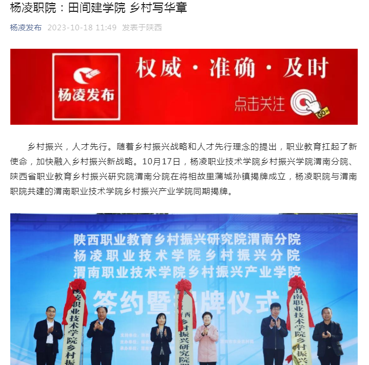 【杨凌发布】杨凌职院:田间建学院 乡村写华章