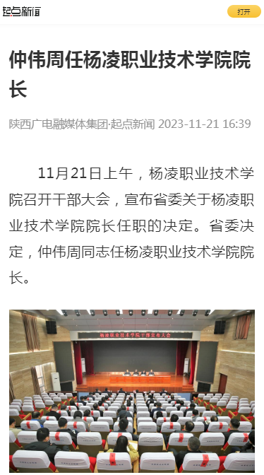 【起点新闻】仲伟周任杨凌职业技术学院院长