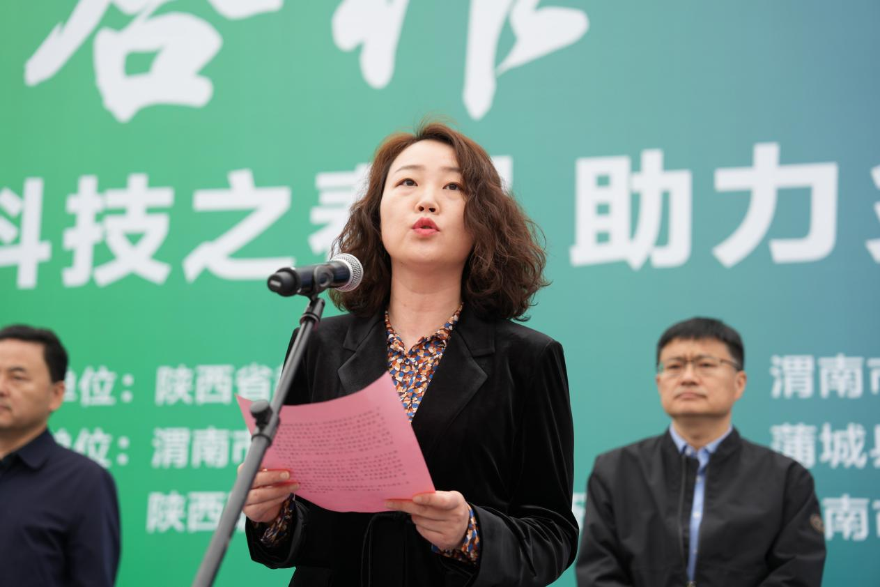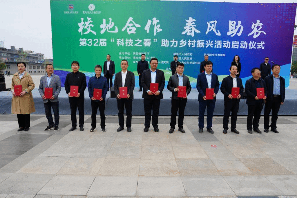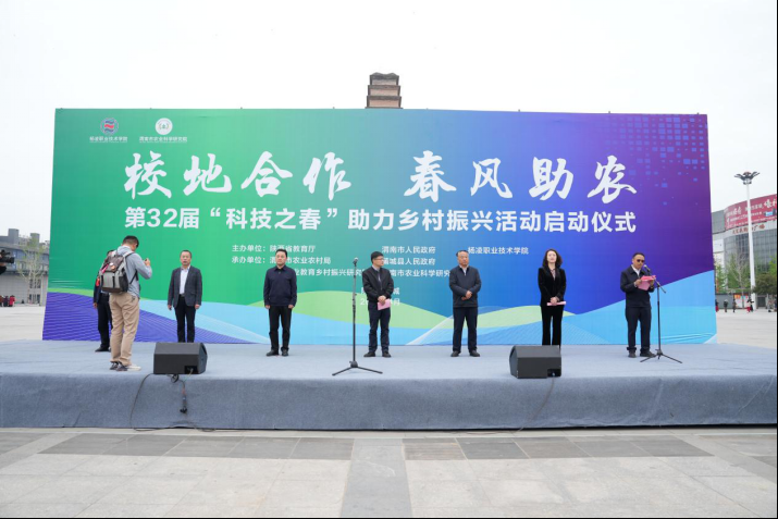 4月10日,由陕西省教育厅、渭南市委市政府和杨凌职业技术学院主办的第32届“科技之春”助力乡村振兴活动启动仪式在渭南市蒲城县中心广场举行。杨凌职业技术学院党委书记王周锁宣布第32届“科技之春”助力乡村振兴活动启动。省教育厅高校技术转移中心主任田鹏,渭南市农业农村局党委委员、副局长刘刚、党组成员、副局长普布顿珠,渭南市农科院院长王杨军,杨凌职业技术学院副校长胡俊鹏,蒲城县副县长冯新等出席启动仪式。