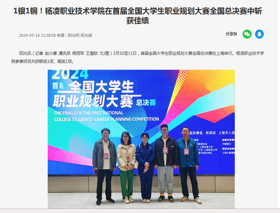 5月10至11日,首届全国大学生职业规划大赛全国总决赛在上海举行。杨凌职业技术学院参赛项目共获银奖1项、铜奖1项。
